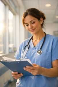 - Comprehensive medical assessment – Vital signs (blood pressure, heart rate, temperature), physical exam, and health history review